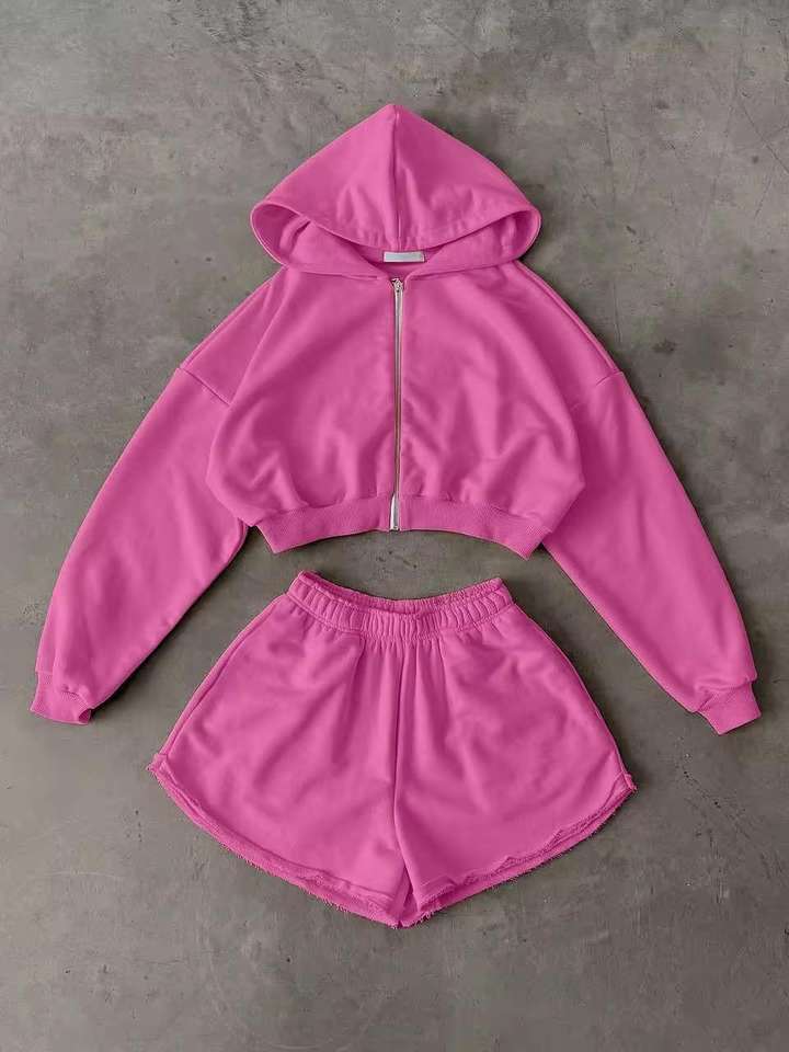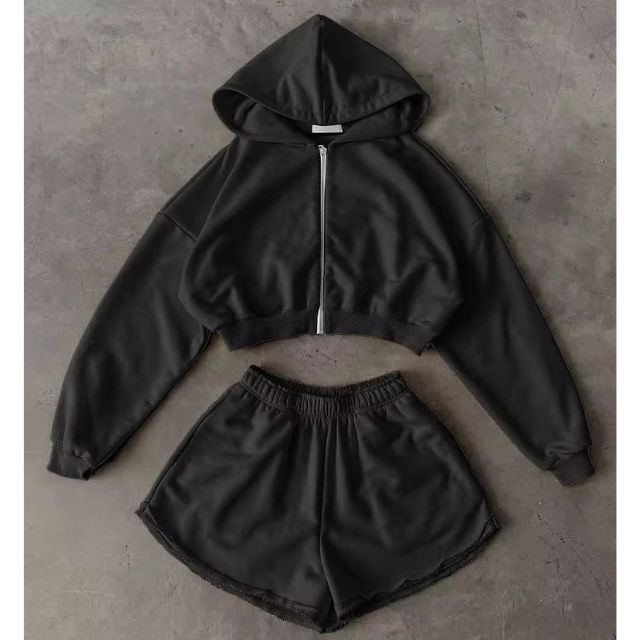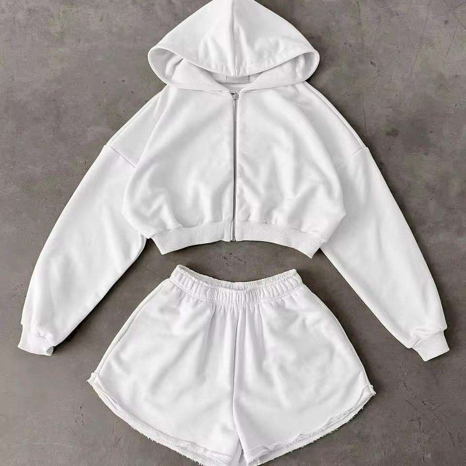 ชุดเซ็ตเสื้อผ้าฝ้ายแท้ 100% ผ้าเฟรนช์เทอร์รี่สำหรับผู้หญิง ขายดี ชุดเซ็ต 2 ชิ้น กางเกงขาสั้น ซิปยาวถึงเข่า สีพื้น เป็นมิตรกับสิ่งแวดล้อม ปรับแต่งได้ สไตล์ไฮสตรีท