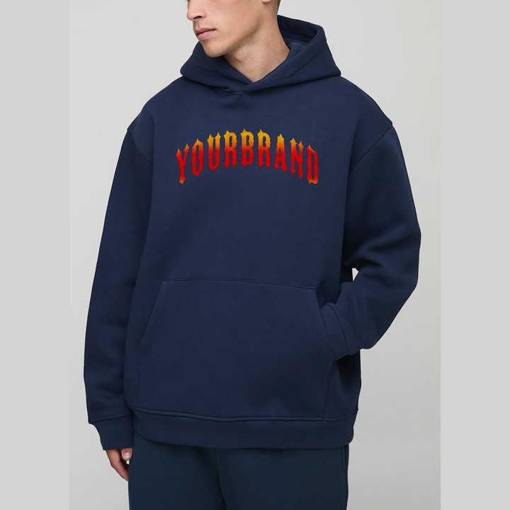 เสื้อฮู้ดดี้ผู้ชายทรงโอเวอร์ไซส์ ผ้าคอตตอน 100% เนื้อหนา พิมพ์ลาย DTF ปักโลโก้ ระบายอากาศดี สไตล์ฮิปฮอป ขายดี