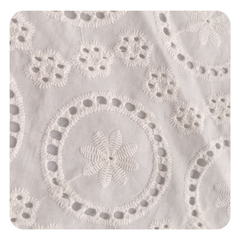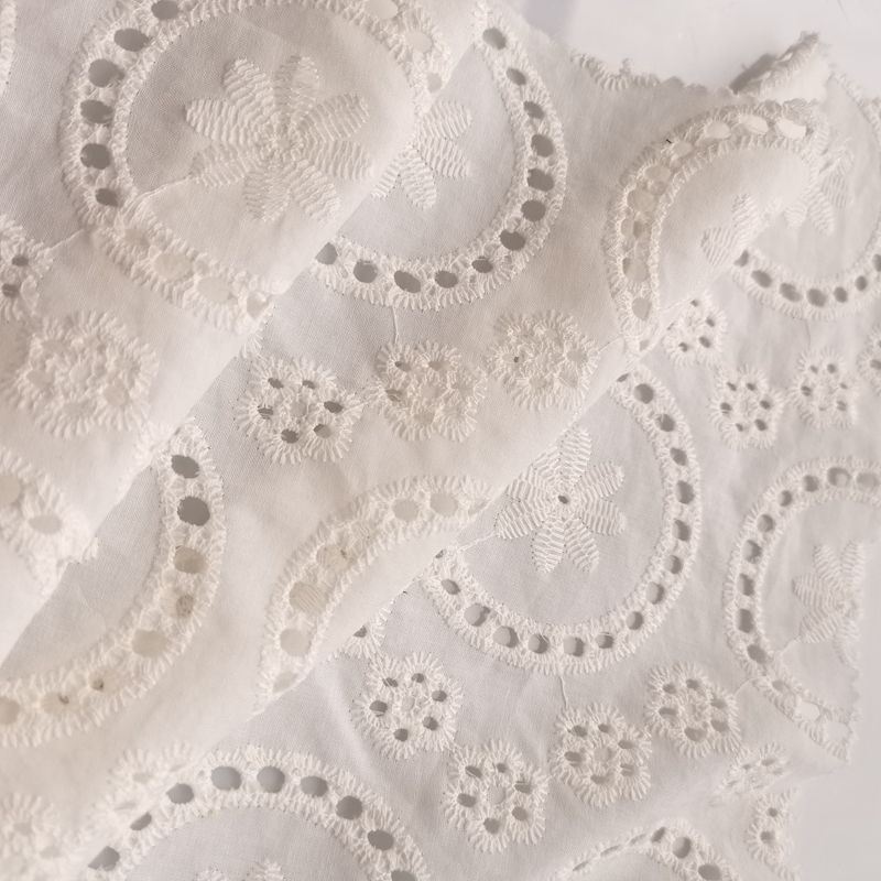 ผ้าปักลายฉลุสีขาว 100% ผ้าฝ้าย งานปักละเอียดอ่อน สำหรับตัดเย็บเสื้อผ้า ขายดี