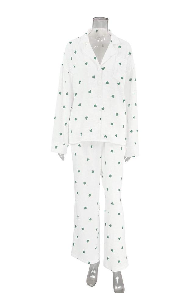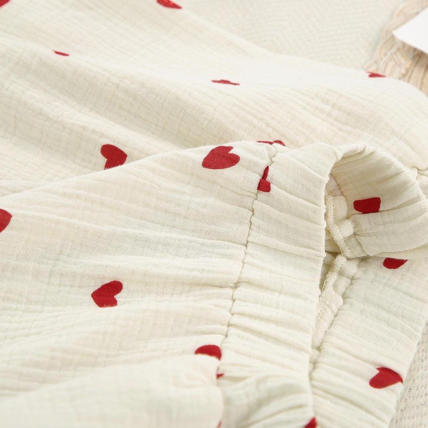 ชุดนอนผ้าฝ้าย100% แขนยาวสำหรับผู้หญิงชุดนอนผ้าฝ้ายแขนยาวพิมพ์ลายหัวใจคลาสสิกสำหรับวันวาเลนไทน์