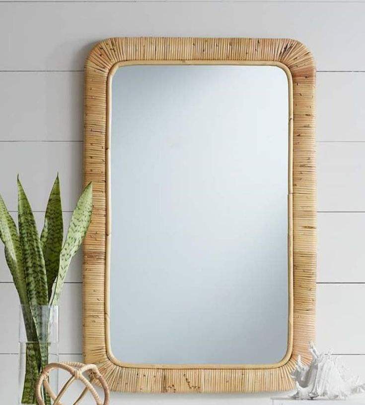 กระจกเงาหวาย100% เป็นมิตรต่อสิ่งแวดล้อมกรอบสี่เหลี่ยมผืนผ้ากระจกหวายสานด้วยมือ FBA Amazon
