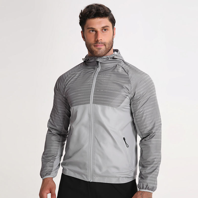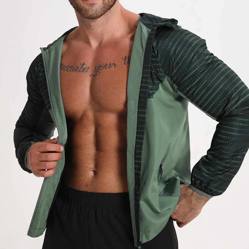 แจ็กเก็ตมีฮู้ดสำหรับผู้ชายแจ็กเก็ตมีซิปพิมพ์โลโก้ของคุณผ้าโพลีเอสเตอร์100%