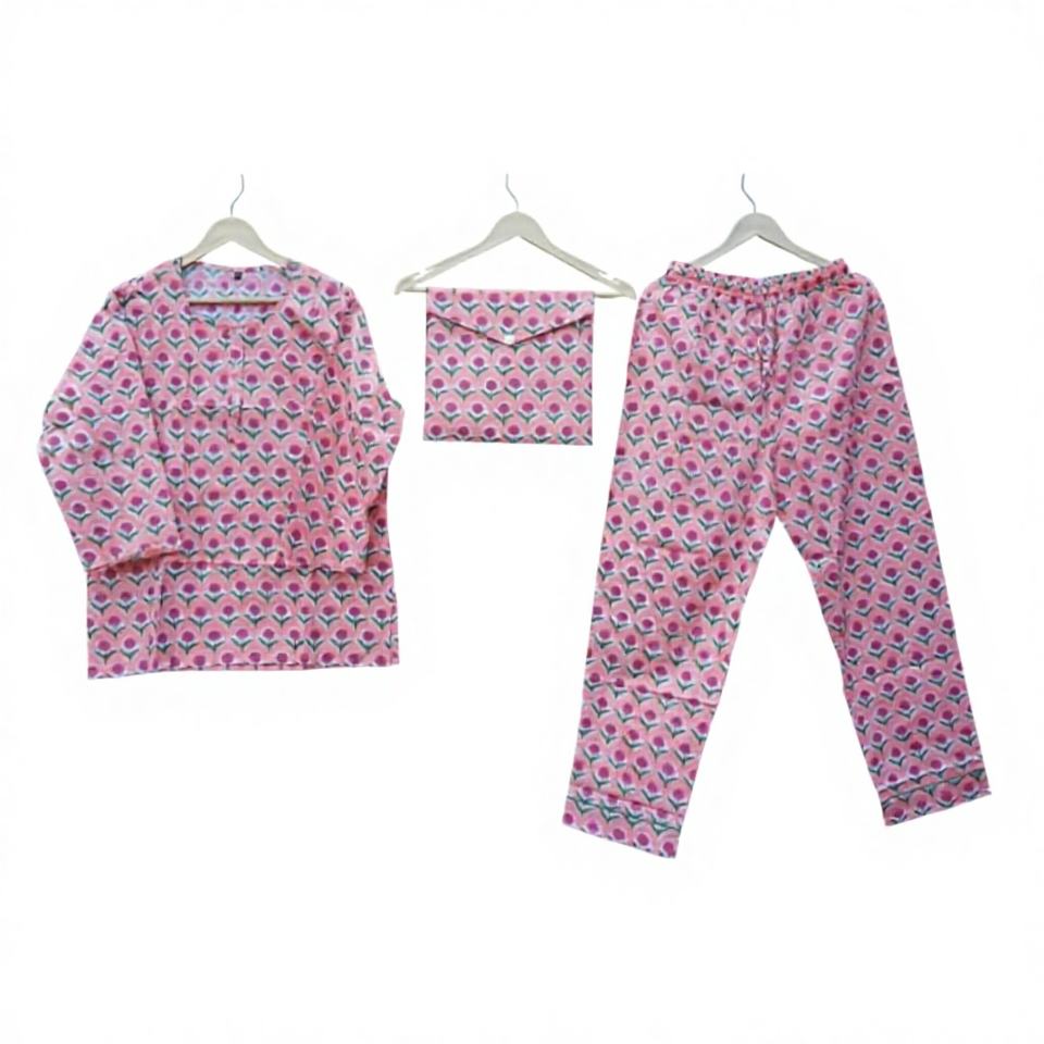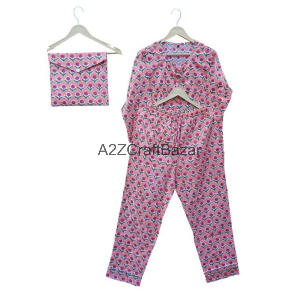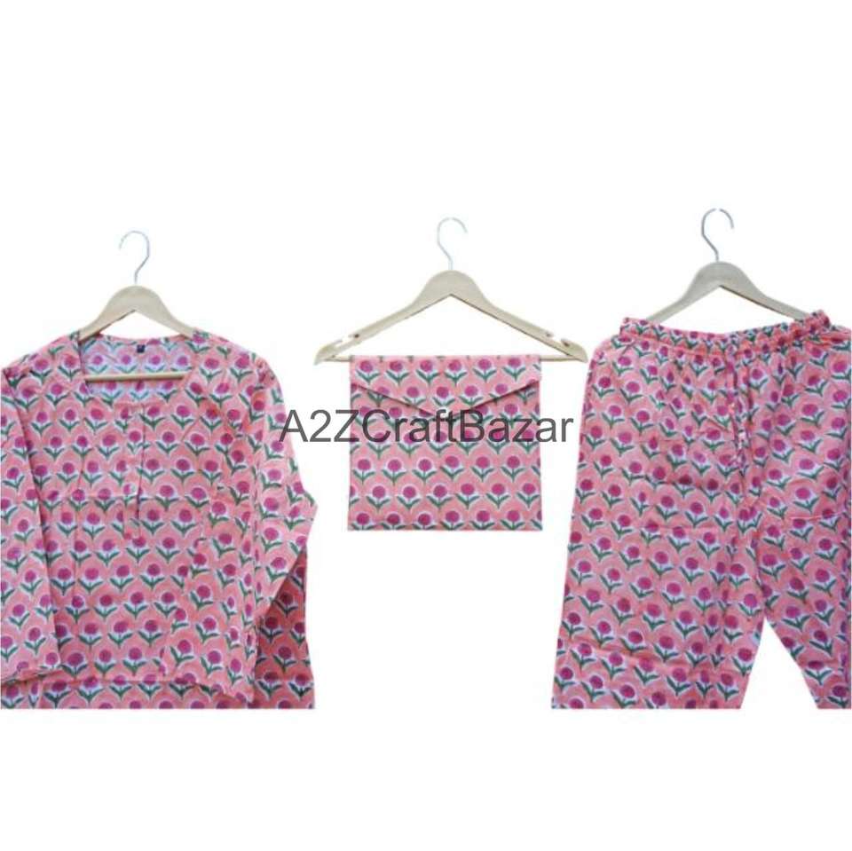 ชุดนอนผ้าฝ้ายแท้ 100% พิมพ์ลายบล็อกด้วยมือ คอกลม นุ่มสบาย หรูหรา โรแมนติก ขายดี สำหรับผู้หญิงและเด็กผู้หญิง