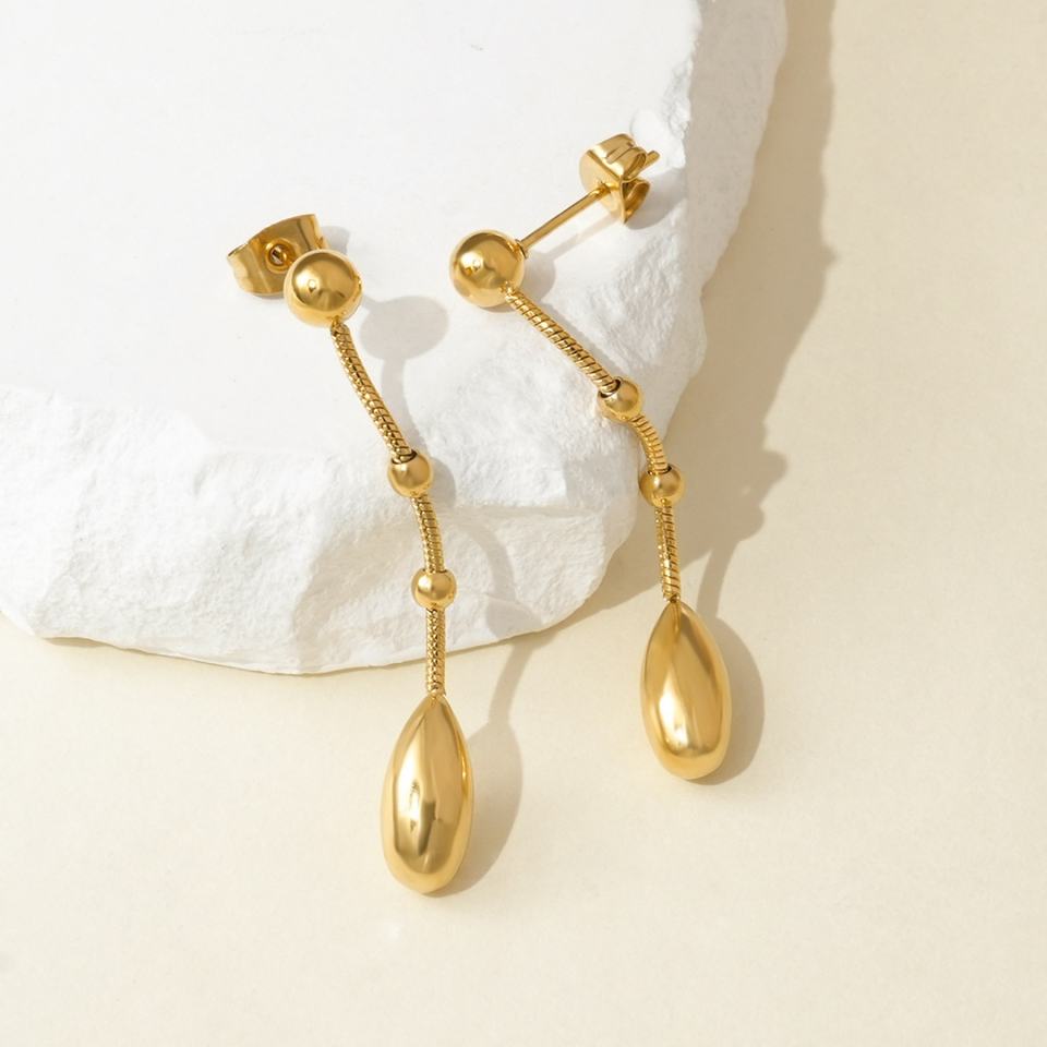 ต่างหูห้อยระย้าทรงหยดน้ำ ชุบทอง 14K สแตนเลส ขายดี กันน้ำ เหมาะสำหรับงานปาร์ตี้ เครื่องประดับแฟชั่นสำหรับผู้หญิง
