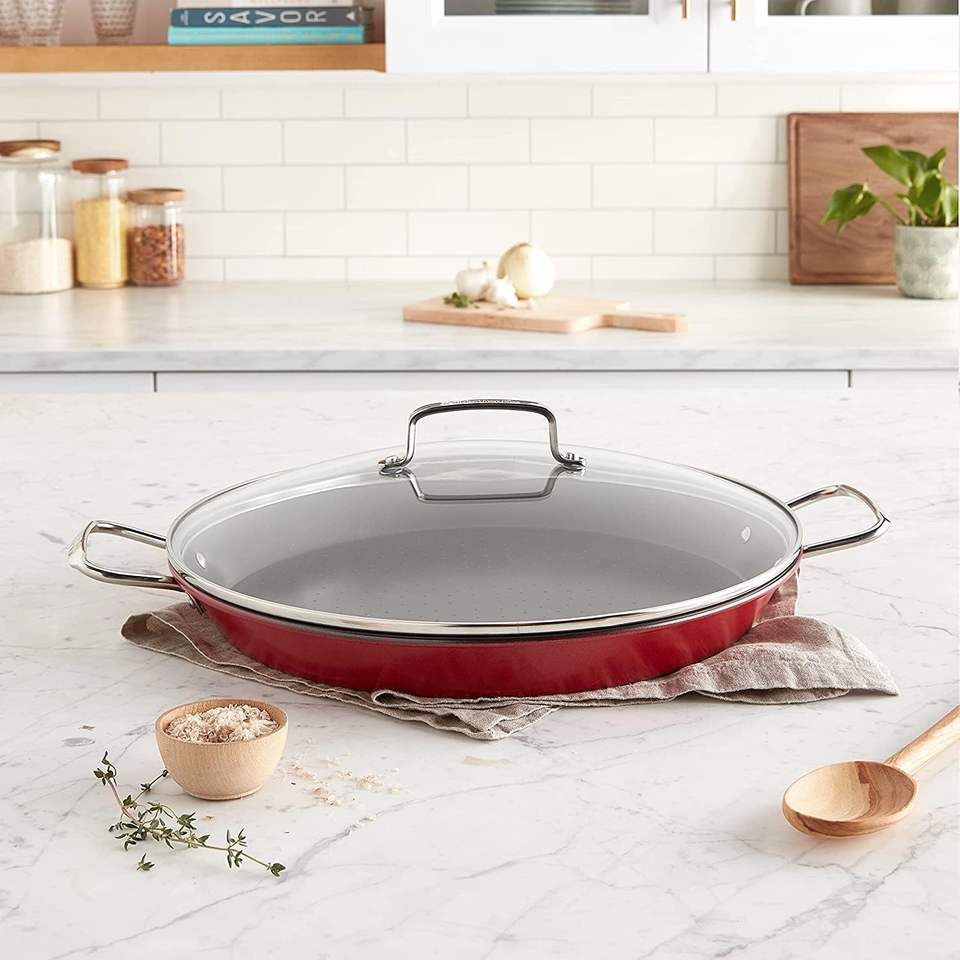 Paella สแตนเลสขนาด15นิ้วพร้อมฝาแก้วทนความร้อน