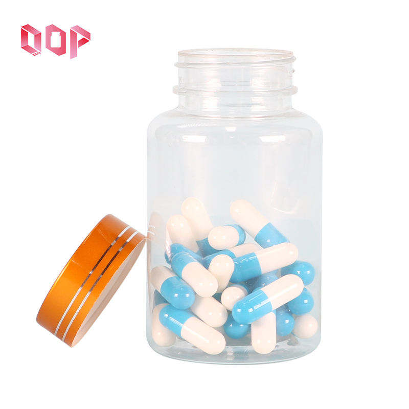 ขายร้อน 150ml 150g ขวดพลาสติกใสพร้อมฝาปิดโลหะทอง, 5 ออนซ์แคปซูลยาแท็บเล็ตขวดบรรจุวิตามินอาหารเกรด