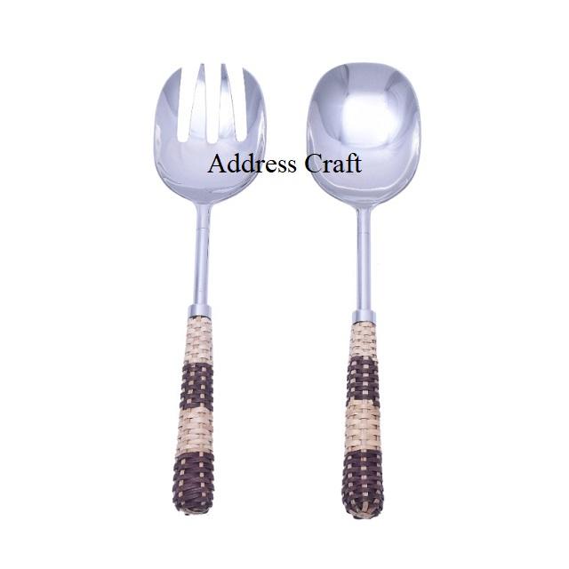 เครื่องมือทำสลัดอาหารสแตนเลสเกรดสูง18/8ปลอดภัยพร้อมด้ามจับทำจากเรซินไม้ช้อนเงินเครื่องมือเสิร์ฟ