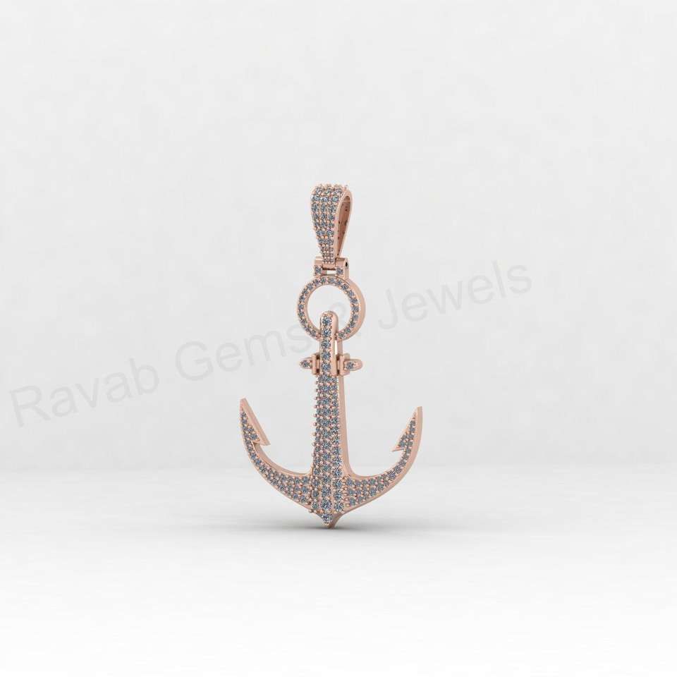 Product Name:Silver Pave CZ Diamond Iced Out Anchor Hip Hop Pendant Necklace
