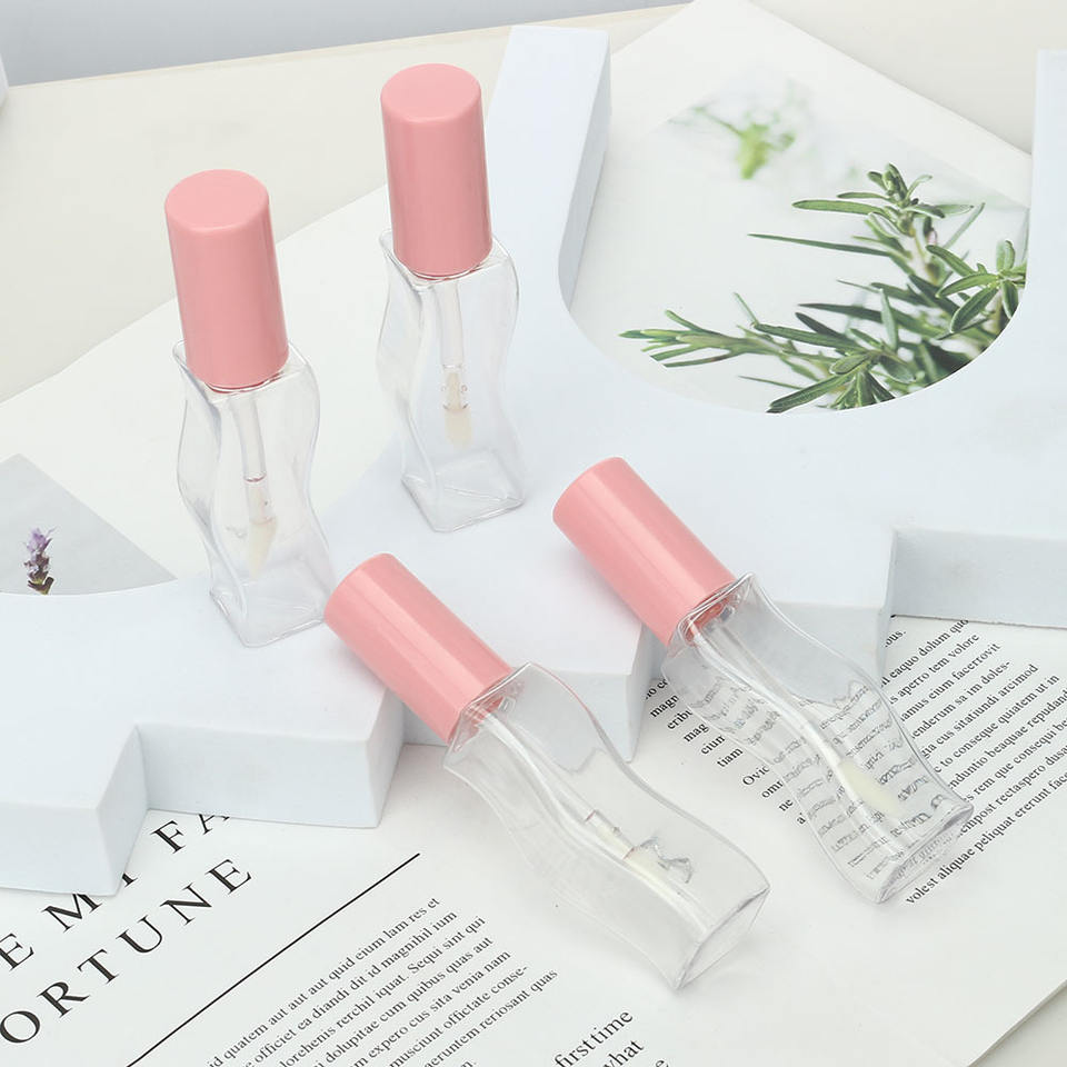 ขวดใส่ลิปกลอสสีชมพูมีลอนใสขนาด18มล. ฝาเกลียวรูปตัวเอสฝาเกลียวบรรจุภัณฑ์เครื่องสำอางคุณภาพสูง