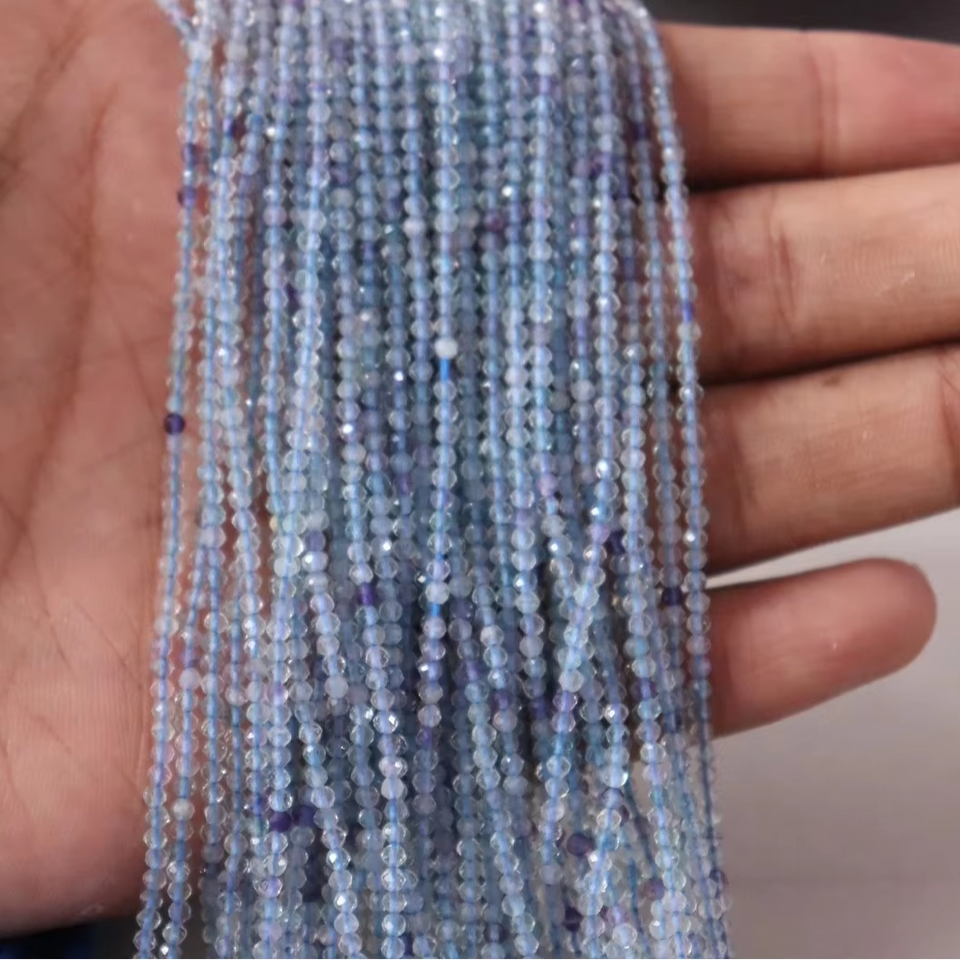 ขายดีลูกปัดหินอัญมณีฟลูออไรต์2-2.5มม. ลูกปัดทรงเหลี่ยมเพชรพลอยธรรมชาติที่สวยงามสำหรับเครื่องประดับขายส่ง