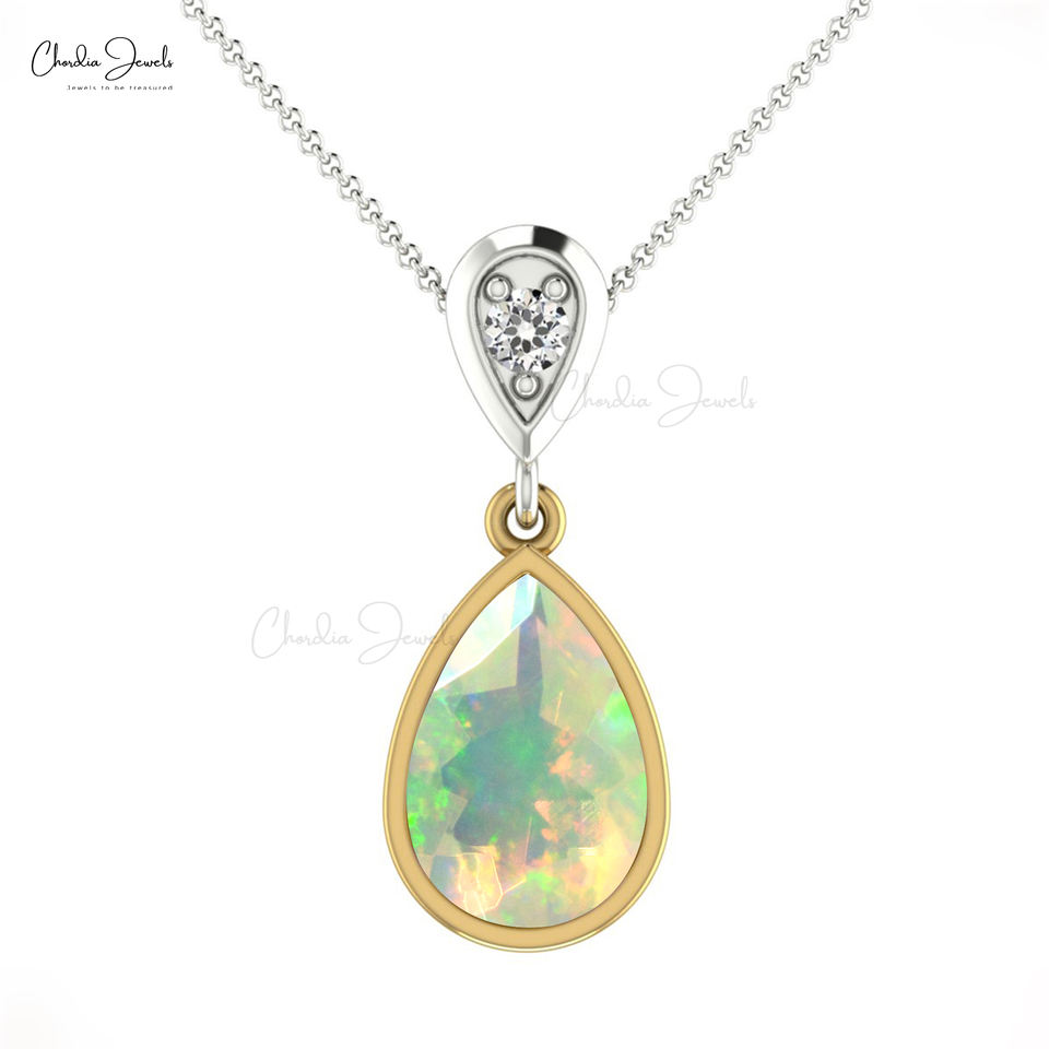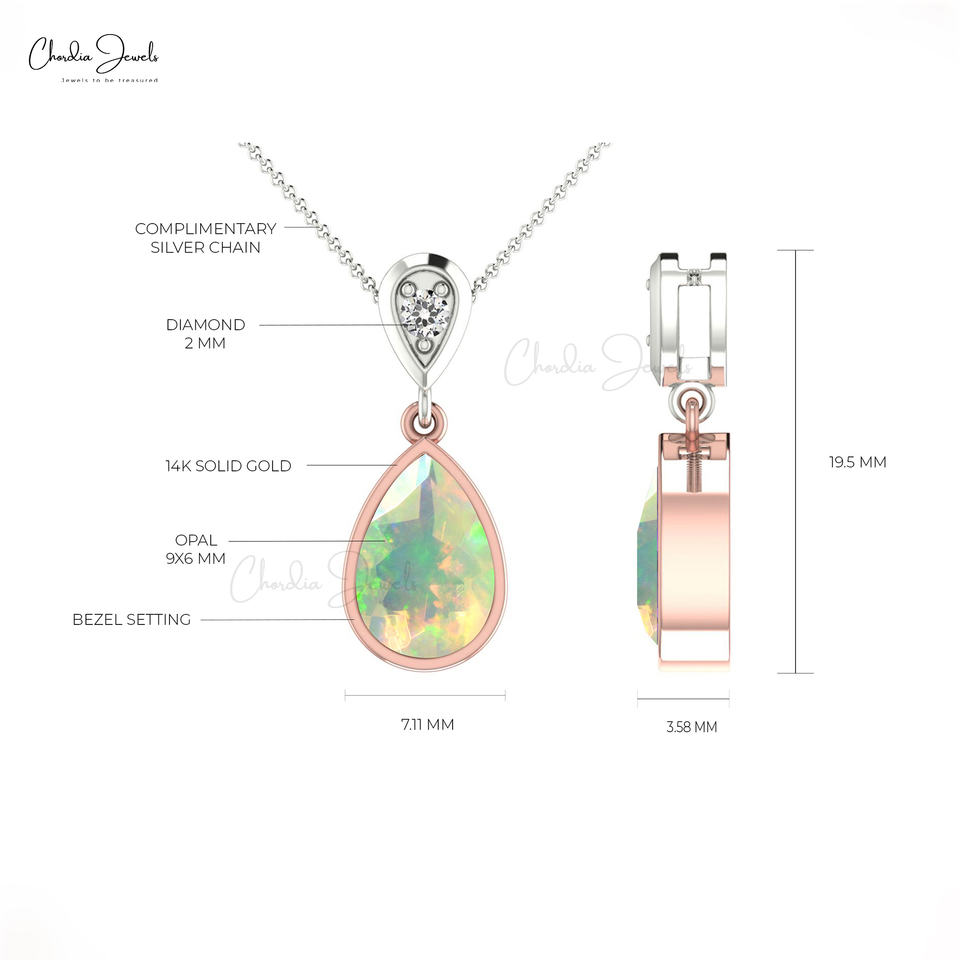 จี้ทองคำแท้ทรงหยดน้ำ 2 ชิ้น ขายดี ประดับโอปอลไฟร์ทรงลูกแพร์ขนาด 9x6 มม. และเพชร G-H รูปทรงหยดน้ำ ขายส่ง รับผลิตแบบ OEM/ODM