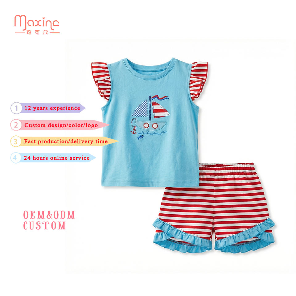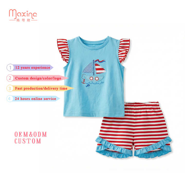 ชุดเด็กผู้หญิงแขนระบายผ้าฝ้าย 2 ชิ้น ขายดี ชุดเด็กผู้หญิงปักลาย ชุดเด็กผู้หญิงสั่งทำ
