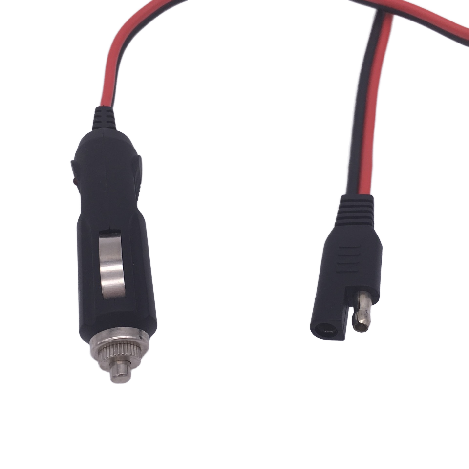 สายต่อพ่วง2-PIN SAE สีแดงสีดำพร้อมปลั๊กบุหรี่สำหรับการใช้งานสายไฟรถจักรยานยนต์