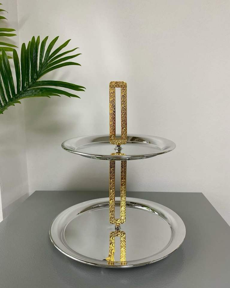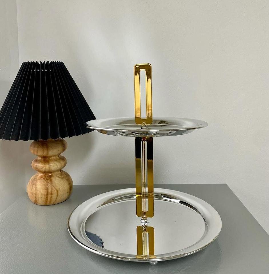 ที่วางเค้กสแตนเลส2ชั้นที่วางคัพเค้กของหวานสำหรับงานเลี้ยงวันเกิดงานแต่งงาน