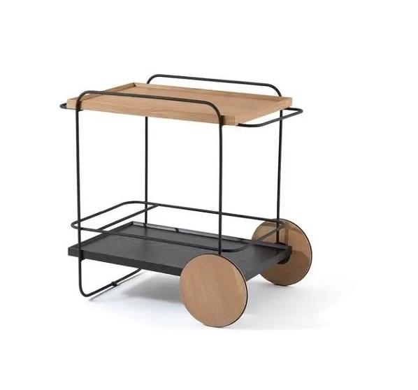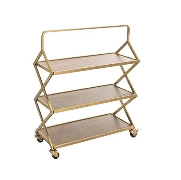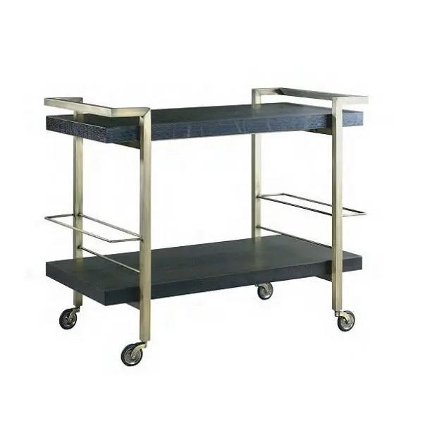 รถเข็นเสิร์ฟอาหาร2023ทำจากสแตนเลสและไม้มี4ล้อสำหรับตกแต่ง