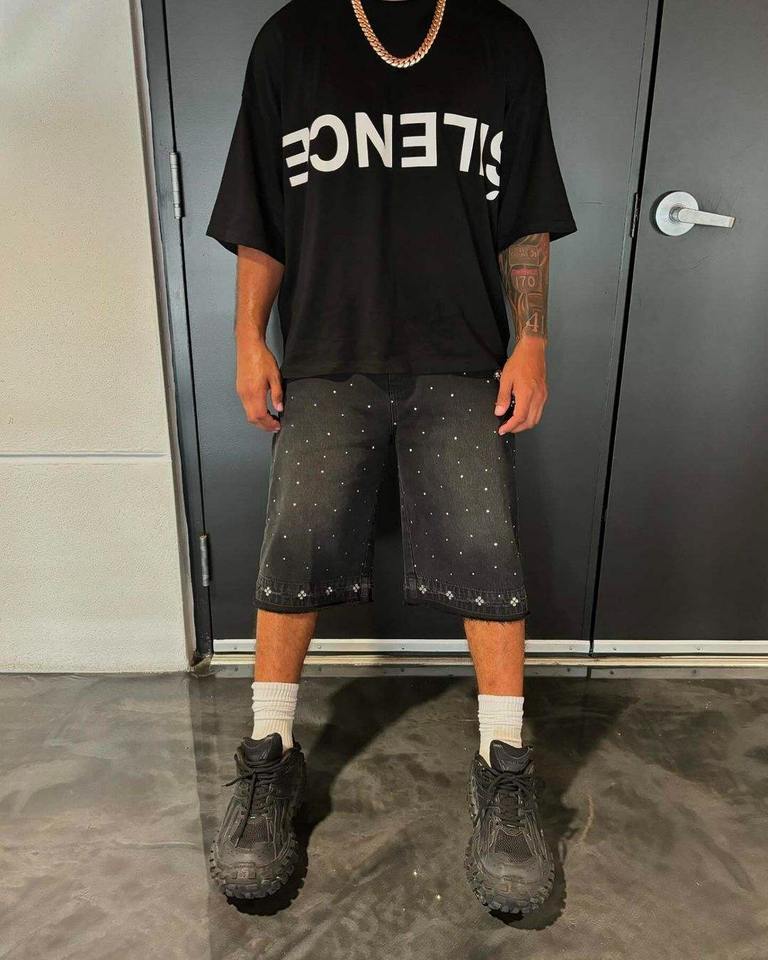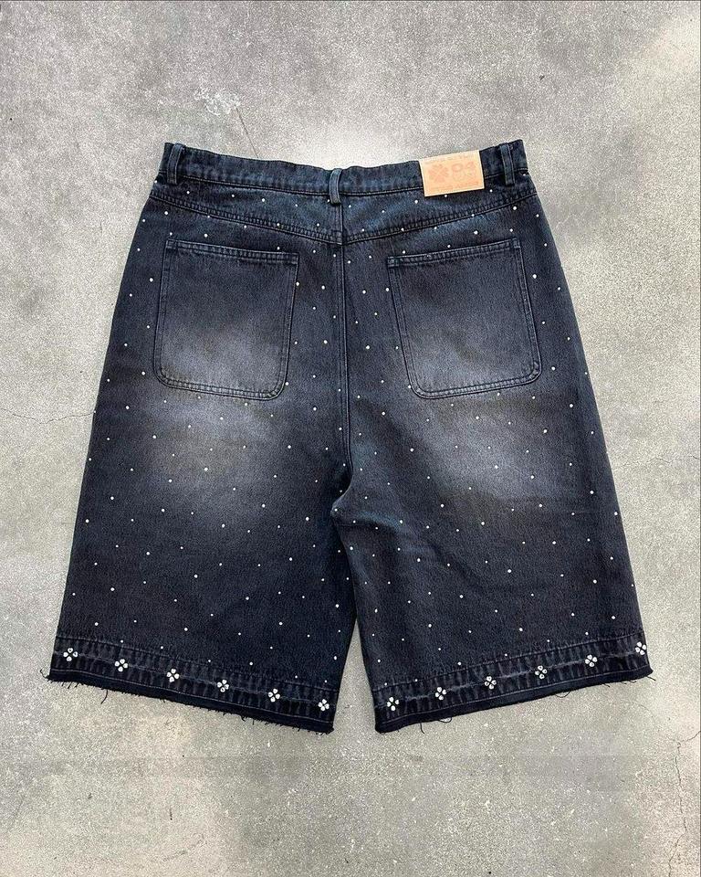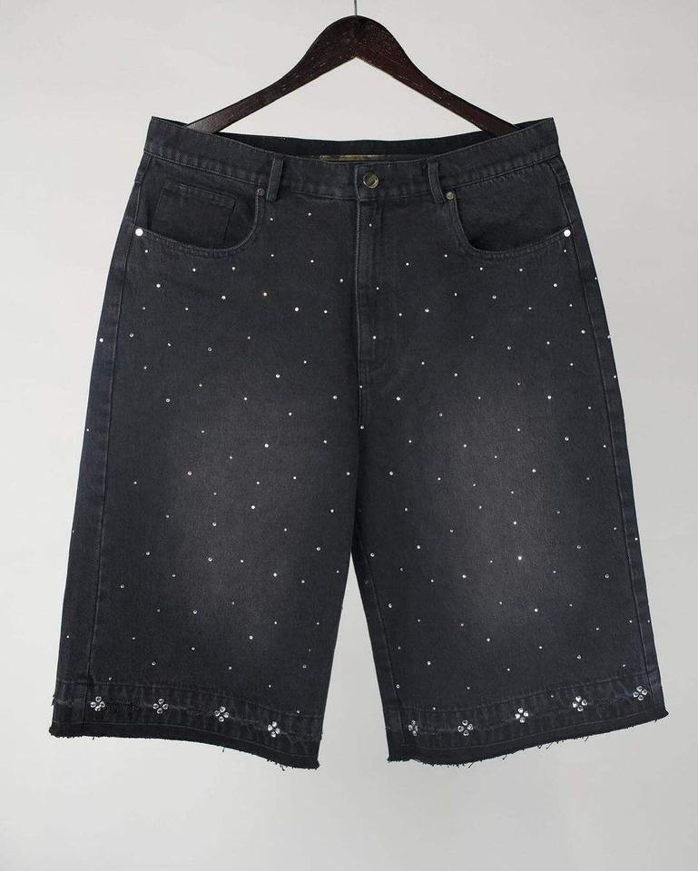 high heavy quality jorts distressed rhinestones vintage denim shorts