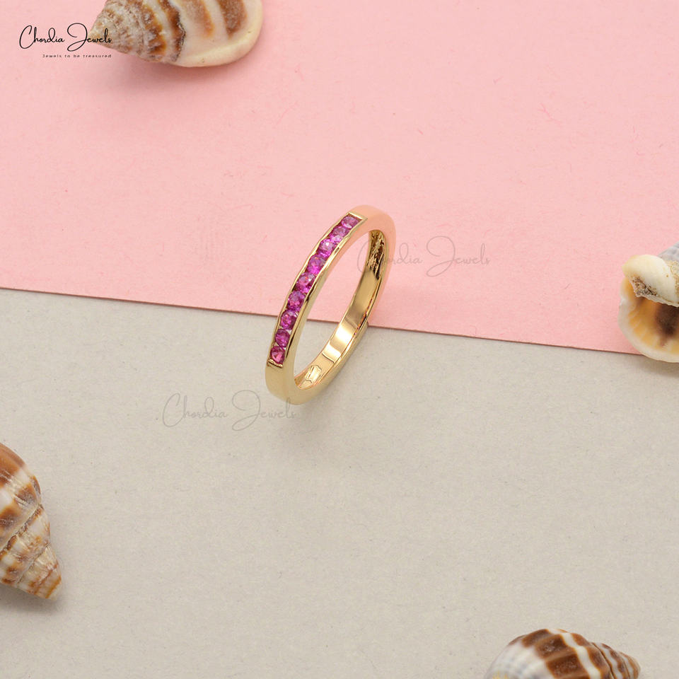 แหวนทองคำแท้ 14k สีเหลือง ประดับพลอยทับทิมทรงกลมขนาด 2 มม. แบบช่องฝัง ซ้อนกันได้ ครึ่งวง ขายดี ปี 2025 สำหรับผู้ค้าส่ง