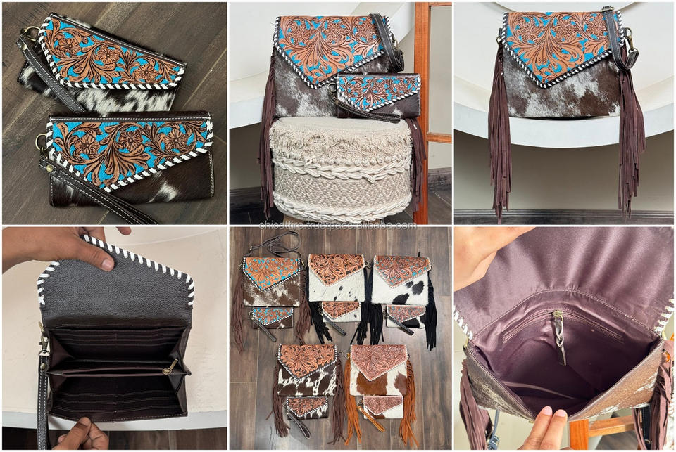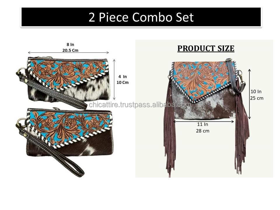 Product name:Hand Tooled Leather Cowhide Fringe Bag & Clucth Combo Set