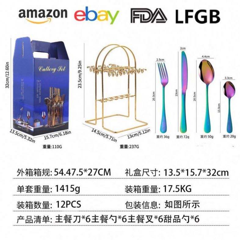 สีของชุดช้อนส้อมที่มีให้เลือก:สีเงิน, สีทอง, สีโรสโกลด์, สีดำ, สีรุ้ง, สีน้ำเงิน