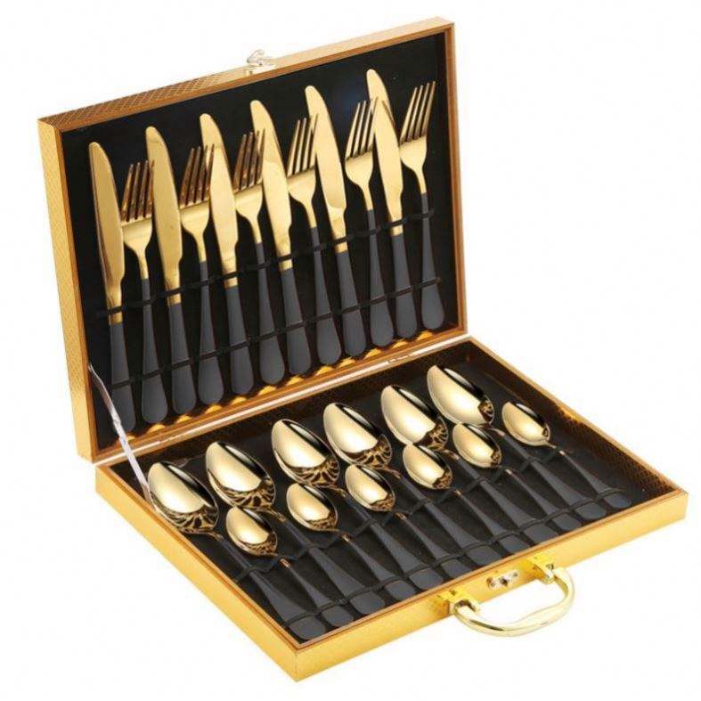 ชุดช้อนส้อมสแตนเลสสีทอง 24 ชิ้น ขายดี พร้อมกล่อง - ของขวัญธุรกิจแบบใช้แล้วทิ้งและเป็นมิตรต่อสิ่งแวดล้อม