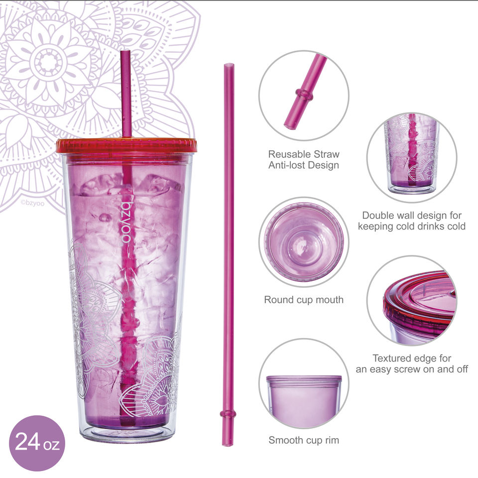 แก้วน้ำพลาสติกเย็น24ออนซ์พร้อมหลอดสีชมพู