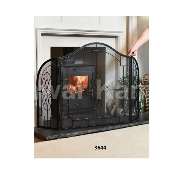 แผงเตาผิงแบบโค้ง3แผงสำหรับตกแต่งที่คลุมป้องกันเตาผิงเหล็กดัดแบบม้วนทำด้วยมือ