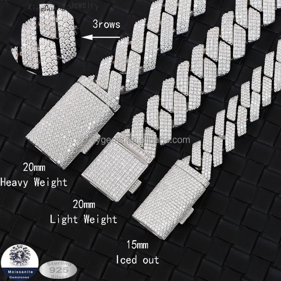 สร้อยคอและกำไลข้อมือฮิปฮอปแบบคิวบันประดับเพชร VVS 3 แถว ขายดี ชุบทองคำแท้ 925 เงินแท้ เครื่องประดับคุณภาพสูง GRA โมอิสซาไนต์