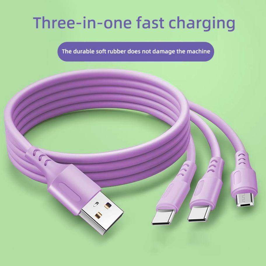 สายชาร์จเร็ว 3 in 1 10W ขายดี ความยาว 1.2ม. 2ม. 2.5ม. สายชาร์จ USB รองรับการชาร์จเร็ว