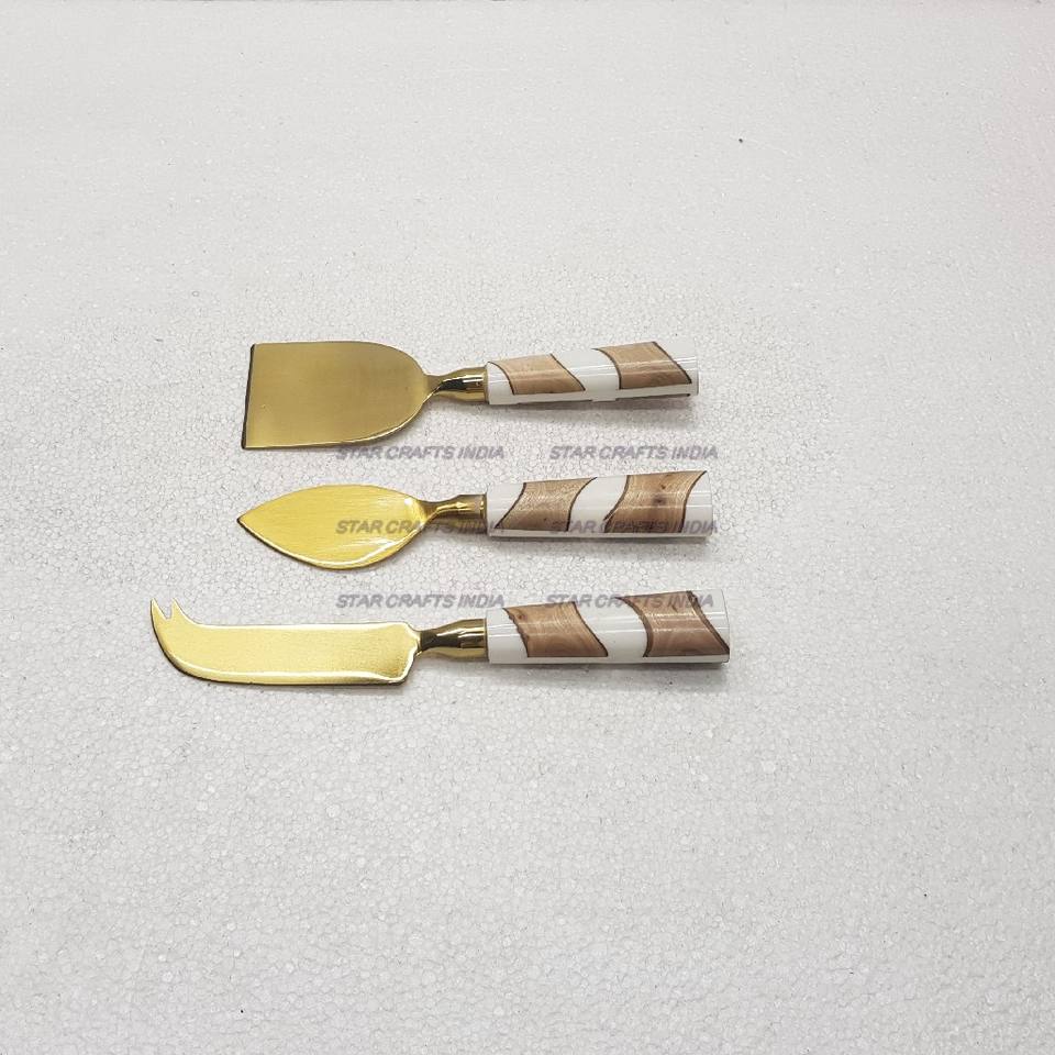 Hot Selling 304 Stainless Steel 3 Pcs Gold Flatware Sets with Marble/Resin Designer Handle Luxury Wedding Party Cutlery Set