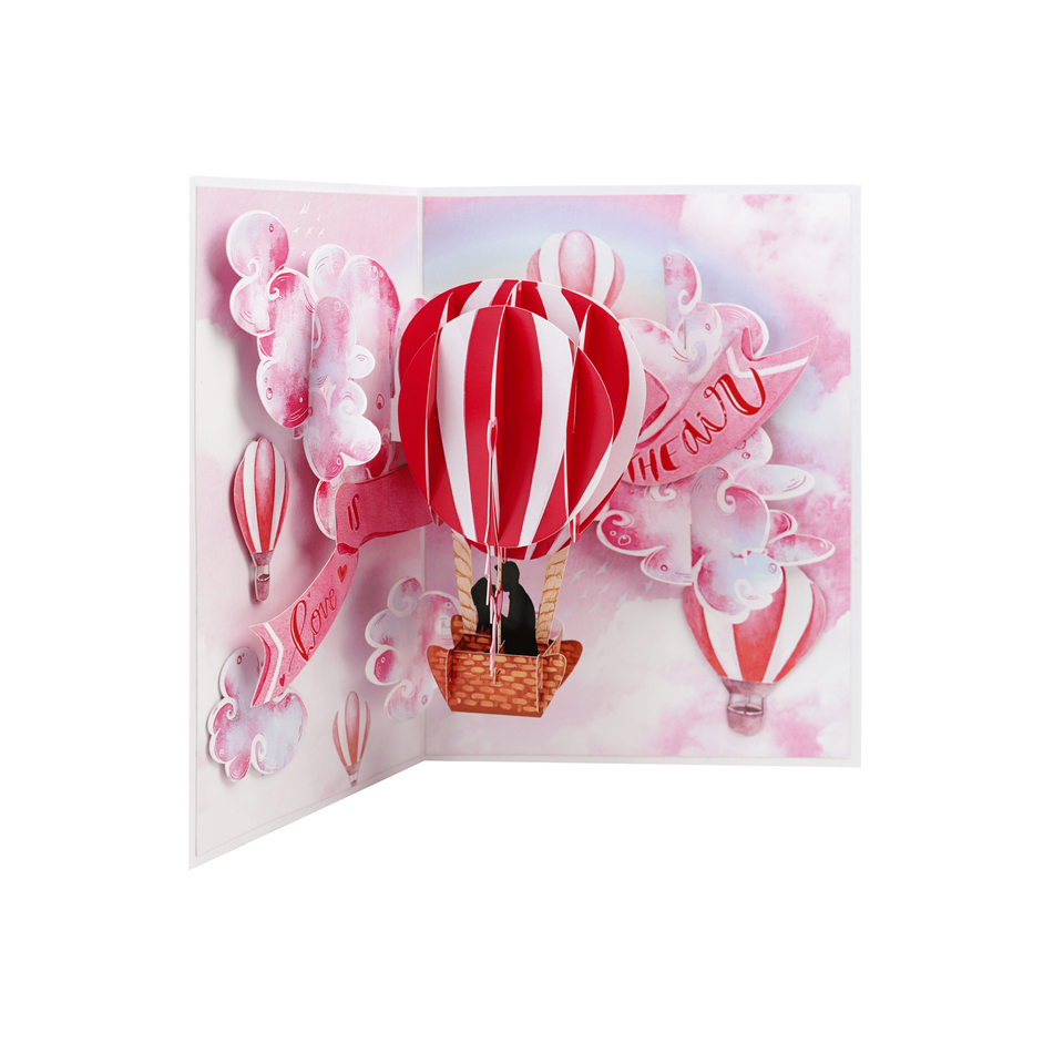 Hot Selling 3D Handicraft 'Love Is Air' Popup Greeting Card Multicolor Paper for Valentine's Day Offset Printing