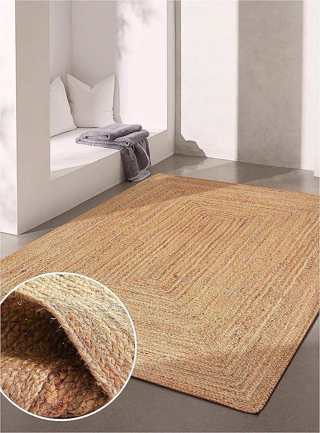 พรมปอกระเจาสไตล์บ้านไร่4 'x 6' ปรับแต่งได้เส้นใยธรรมชาติถักสำหรับห้องนั่งเล่นห้องครัวสำนักงาน