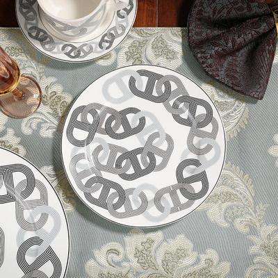ชุดรับประทานอาหารเซรามิกรูปวงแหวนสีเทาหรูหรา4ชิ้นชุดรับประทานอาหารเครื่องลายครามของตกแต่งบ้านที่สวยงาม