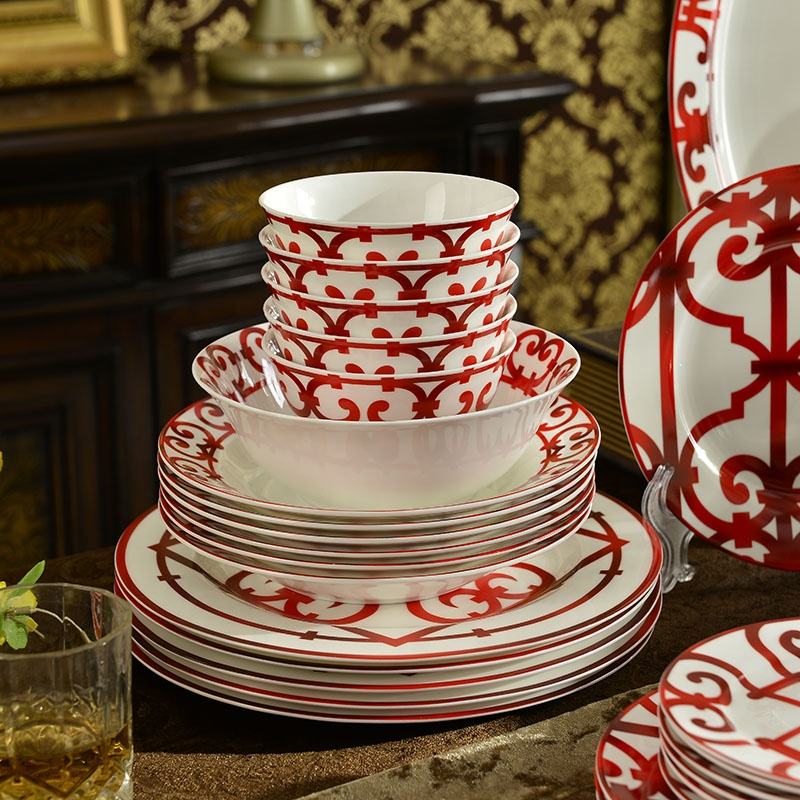 ชุดอาหารเซรามิกสไตล์นอร์ดิกสีแดงลายฉลุ 58 ชิ้น ขายดี