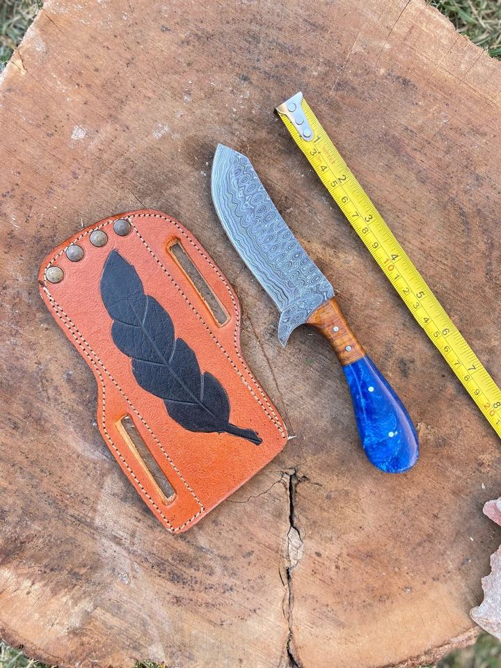 มีดเชฟเหล็กดามัสกัส8นิ้วพร้อมที่จับ G10และที่หุ้มหนังมีดทำครัวพร้อมหมุดโลหะ