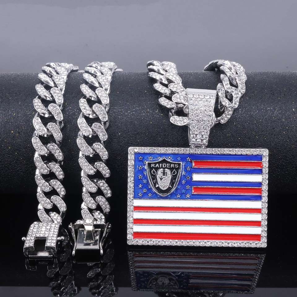 จี้เหรียญรางวัลฟุตบอล Raider ชุบทอง 14K บนเงินแท้ 925 ชุบโรเดียม ประดับโมอิสซาไนต์ สไตล์เรโทร ฮิปฮอป ลายธงชาติอเมริกัน ขายดี