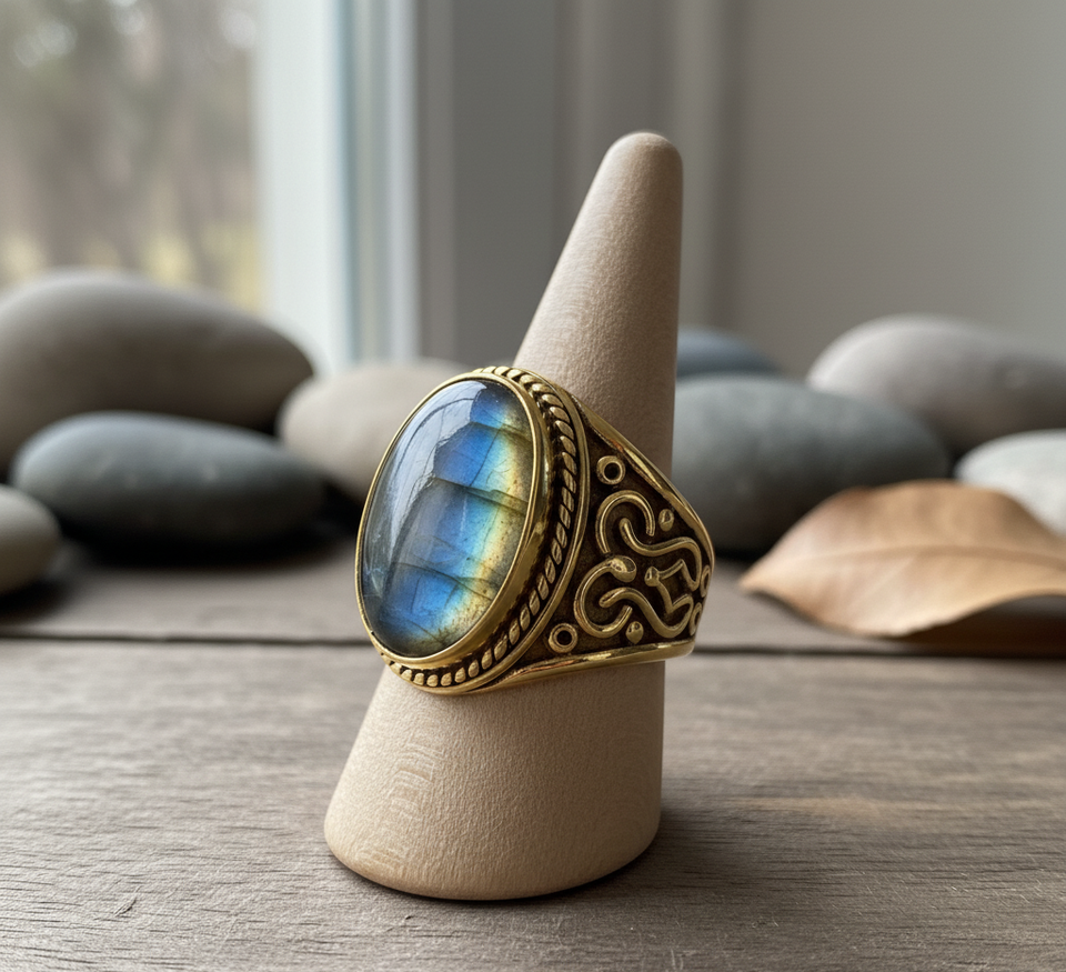 Hot Selling 925 Silver Rhodium Plated Labradorite Gemstone Rose Gold Plated Custom Party Band Women's Jewelry OEM Hot Trend