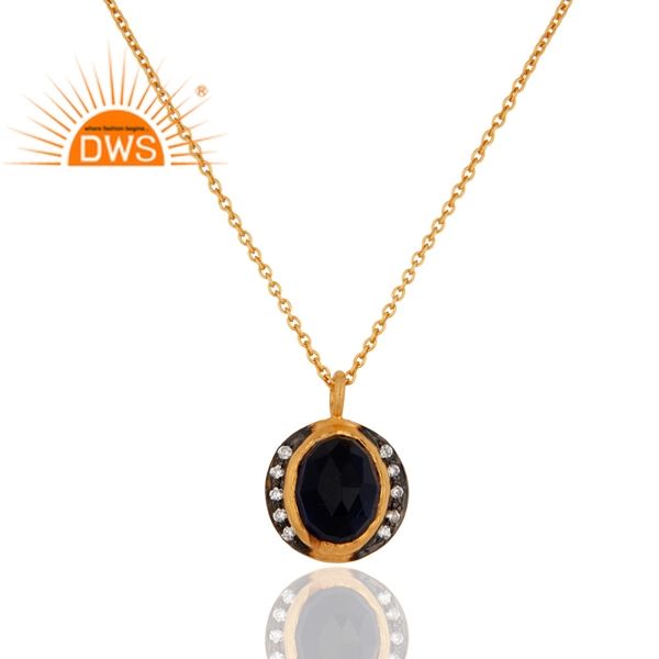 สินค้าขายดี925เงินสเตอร์ลิงสีทอง18K ชุบด้วยคอรันดัมสีฟ้าและอัญมณี CZ จี้อัญมณีผู้ผลิตเครื่องประดับชั้นดี