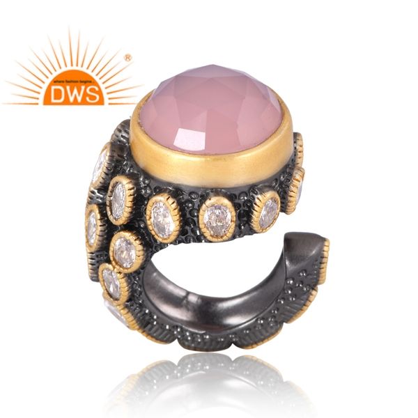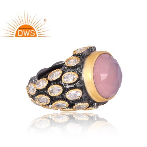 แหวนพลอย925ชุบทอง18K ประดับพลอยคาลซิโดนีและเพชร CZ ชุบทอง18K จากผู้ผลิตเครื่องประดับชั้นดี