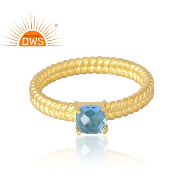แหวนพลอยบุษราคัมสีฟ้าธรรมชาติชุบทอง18K 925เงินสเตอร์ลิงสำหรับผู้ผลิตเครื่องประดับชั้นดี