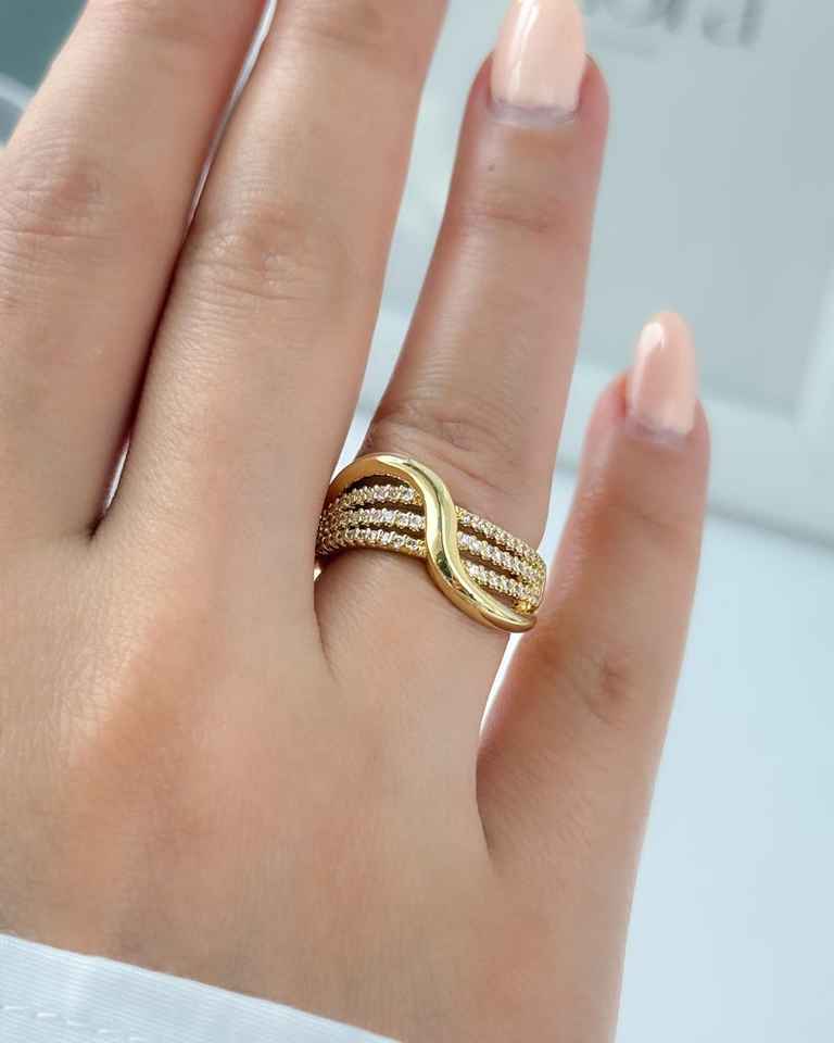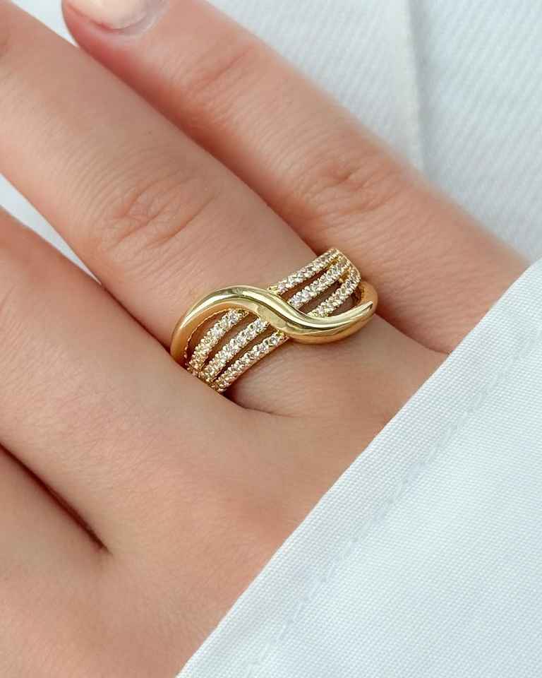 แหวนเงินแท้ 925 ชุบทอง ประดับเพชรคิวบิกเซอร์โคเนียทรงเหลี่ยมเจียระไนแบบบริลเลียนท์ ดีไซน์คริสเตียน สวยหรู ทันสมัย