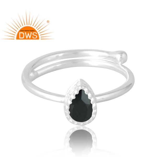 แหวนพลอยกระดูกสันหลังสีดำธรรมชาติทำจากเงิน925เหมาะสำหรับเป็นของขวัญสำหรับผู้หญิง