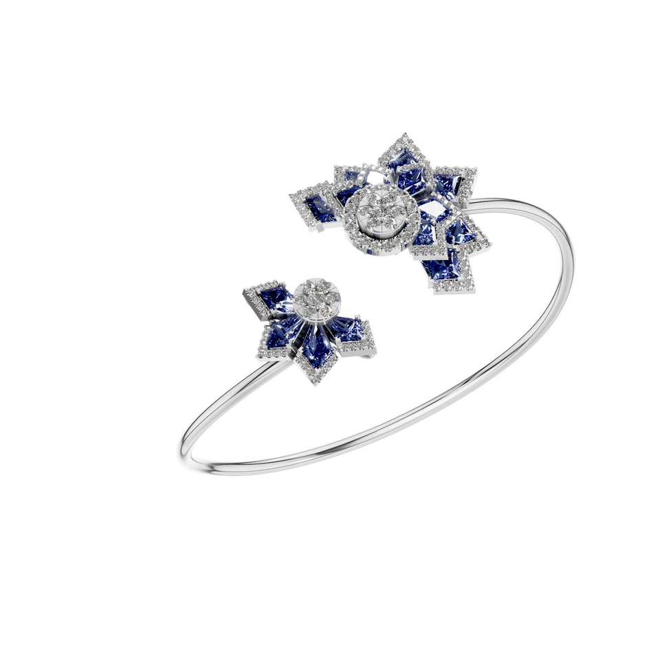 กำไลข้อมือเงินแท้ 925 ชุบโรเดียม ประดับโมอิสซาไนต์ทรงกลม 1.15 กะรัต 152 เม็ด ดีไซน์วงแหวนแบบเปิด ขายดี