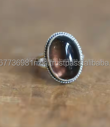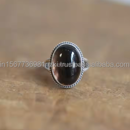 แหวนเงินสเตอร์ลิง925สำหรับผู้หญิงทำด้วยมือแหวนพลอยสีน้ำตาลทรงโค้งสำหรับงานแต่งงานแหวนควอทซ์สโมควอตซ์