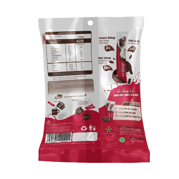 ชื่อผลิตภัณฑ์:Acacacao ผงช็อคโกแลตสำเร็จรูป-รสชาติดั้งเดิม-16กรัม