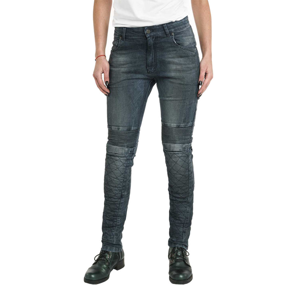 กางเกงยีนส์ขายาวทรงสีกรมท่าผ่านการรับรองจาก CE สำหรับสุภาพสตรีผ้าเดนิมสีเข้มใส่ได้พอดีกับมอเตอร์ไซด์