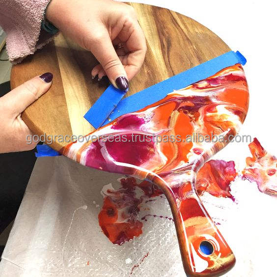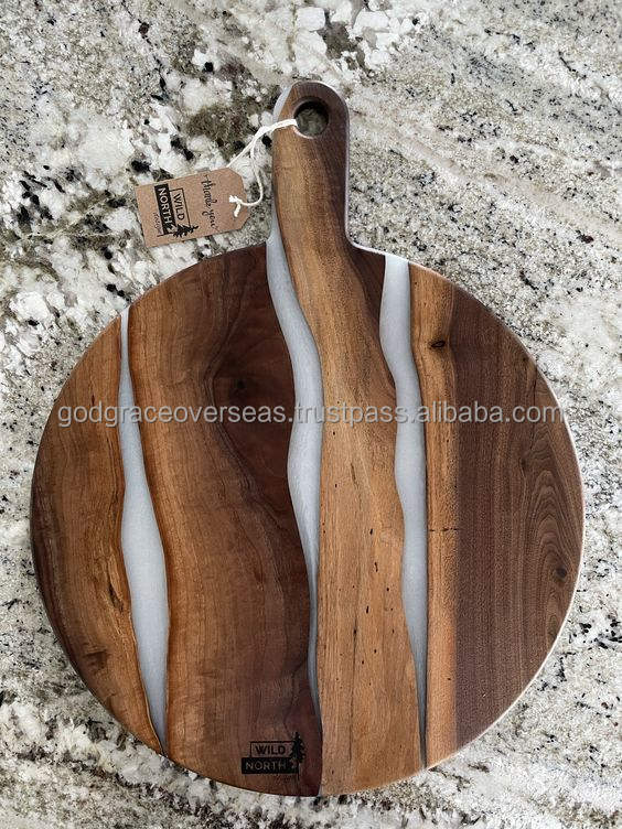 เขียงไม้โอ๊คอะคาเซียเคลือบอีพ็อกซี่เรซิ่นรูปทรงสี่เหลี่ยมผืนผ้าสำหรับเสิร์ฟอาหาร ล้างในเครื่องล้างจานได้ รุ่นขายดีที่สุด
