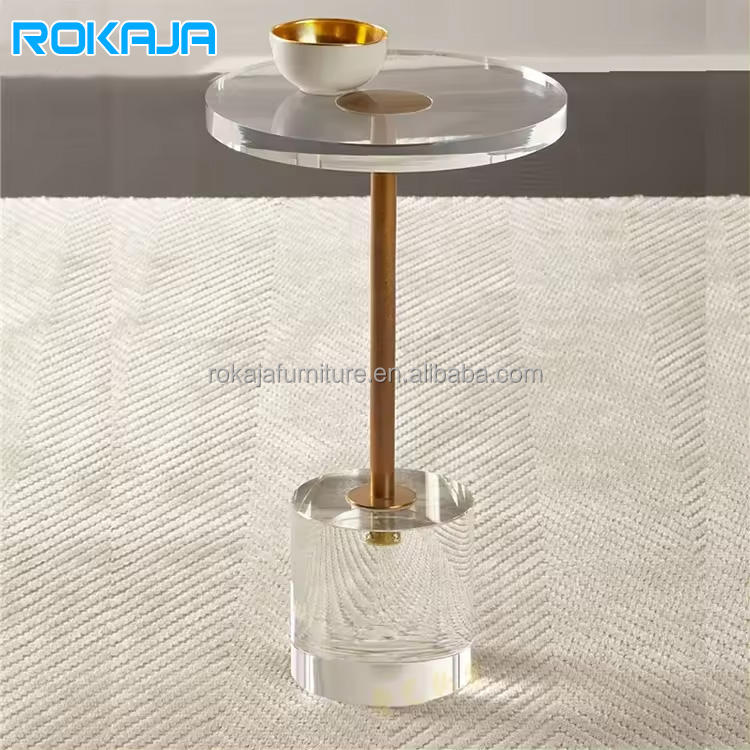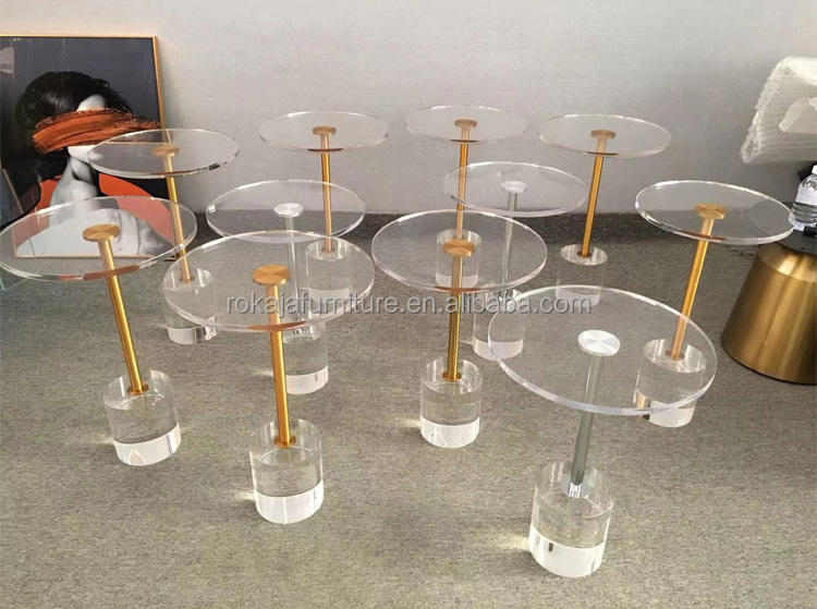 โต๊ะกาแฟอะคริลิคขนาดเล็กโต๊ะข้างกลมโปร่งใสปรับแต่งได้สำหรับงานแต่งงาน