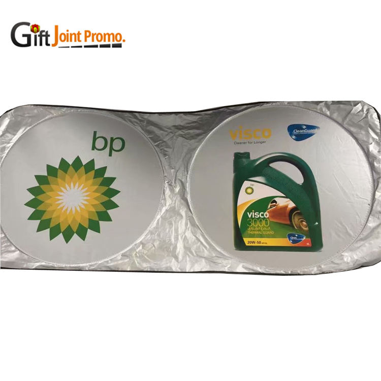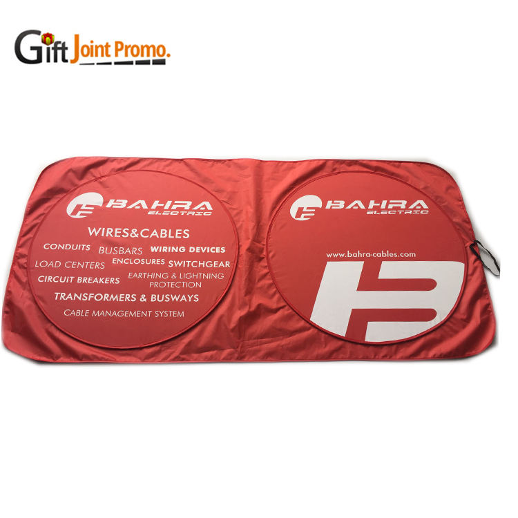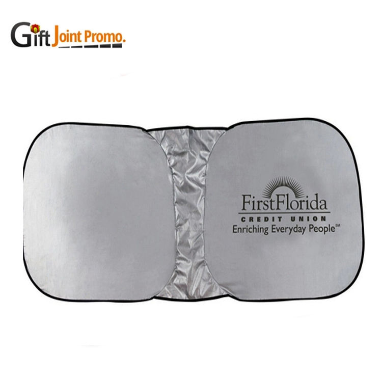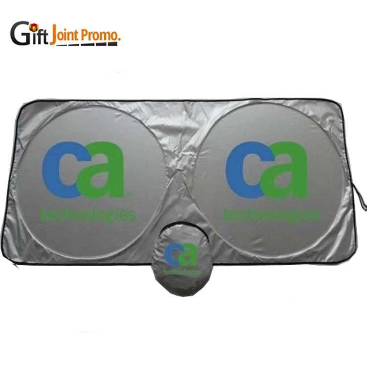 ที่บังแดดรถยนต์แบบพับได้ ทรงวงกลมคู่ ทำจากโพลีเอสเตอร์กันรังสียูวี ป้องกันความร้อนจากแสงแดด สำหรับกระจกหน้ารถ พร้อมโลโก้ ขายดี