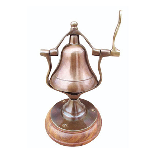 ร้อนขายอลูมิเนียมโต๊ะระฆังสีบรอนซ์สําเร็จรูปบนฐานไม้สไตล์วินเทจตกแต่งโต๊ะระฆังอาหารค่ําCall Desk Bell
