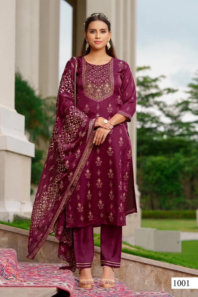Hot Selling Gold Printed Silk Kurti Pant With Dupatta